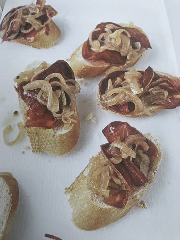 - Tartines au chorizo, confitures d'oignons