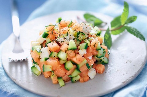 - Tartare de melon, feta, concombre et menthe