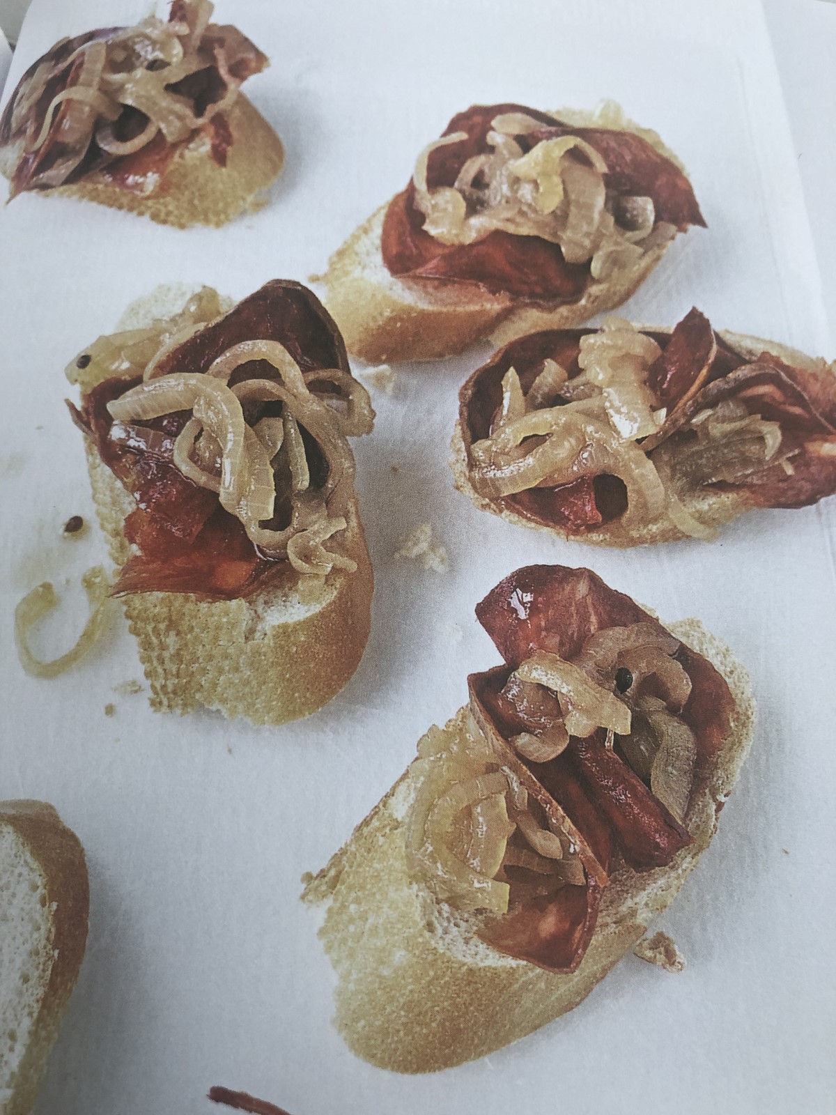 Tartines au chorizo, confitures d'oignons