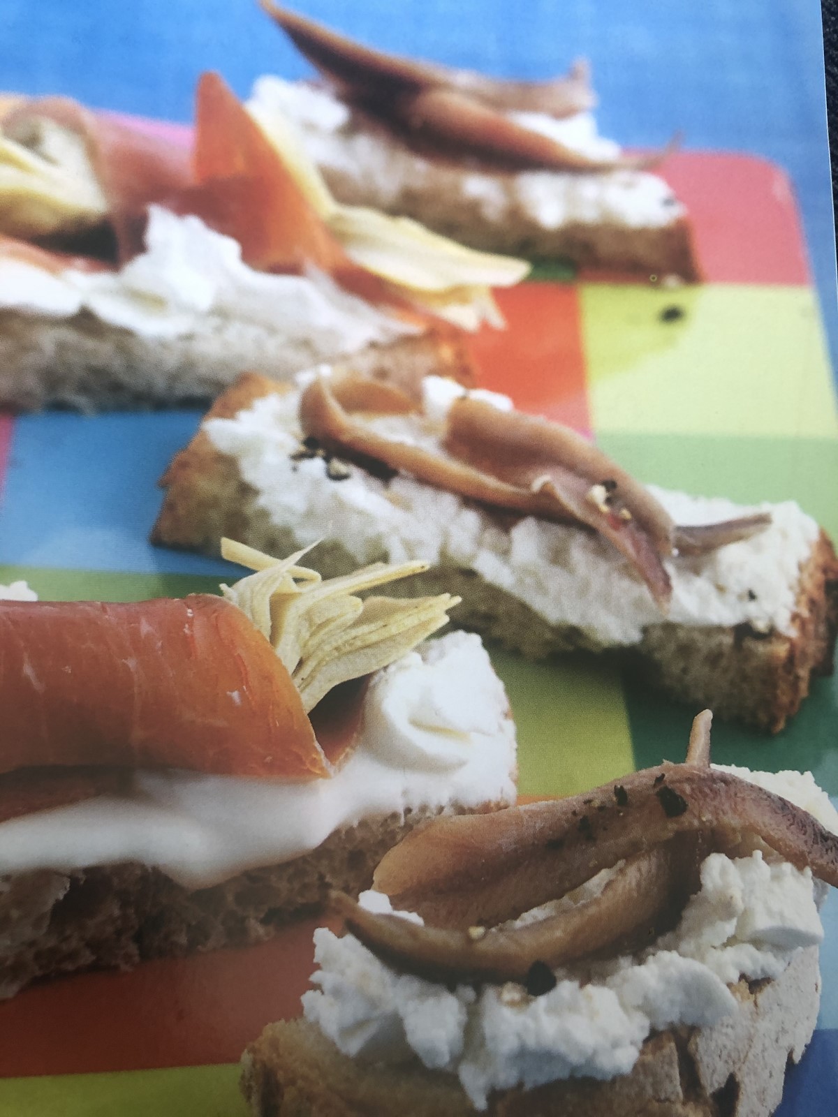 Tartines, artichaut, jambon, anchois