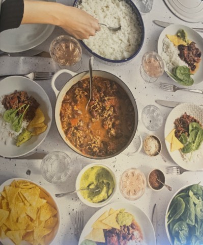 - Servir le chili avec le riz, les pousses d'épinards, les tortillas et le guacamole.