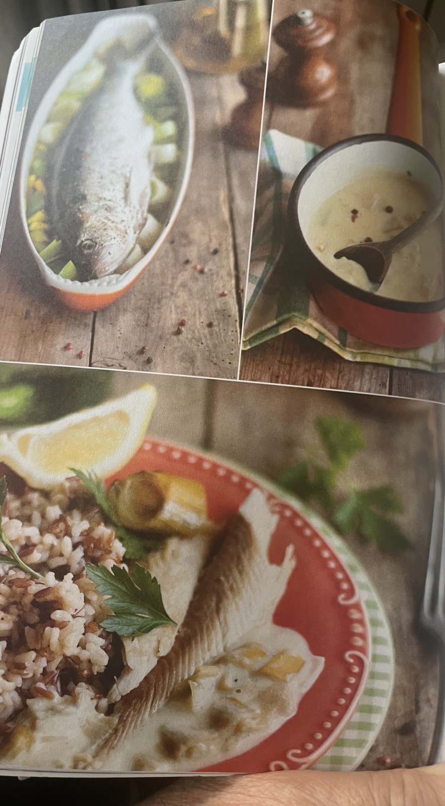 Poisson blanc rôti aux poireaux, sauce crêmeuse