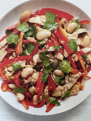 - Mélanger les haricots, les câpres, le poivron, la coriandre, le thon et l'huile d'olive avec la vinaigrette avant de servir