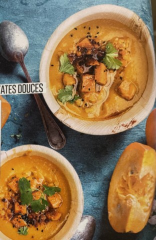 - Au moment de servir, répartissez la soupe dans les bols, arrosez d'un filet d'huile d'olive, parsemez de paprika, de sésame noir, de cubes de patates douces (réchauffez si besoin) et des feuilles de coriandres.