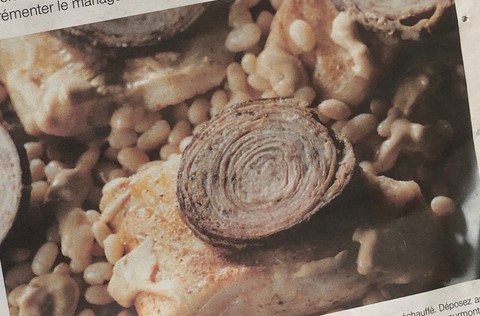- Dressez les cocos dans un plat de service chaud. Déposez les filets de lieu sur les cocos, surmontés des andouilles, arrosez d'un peu de sauce.