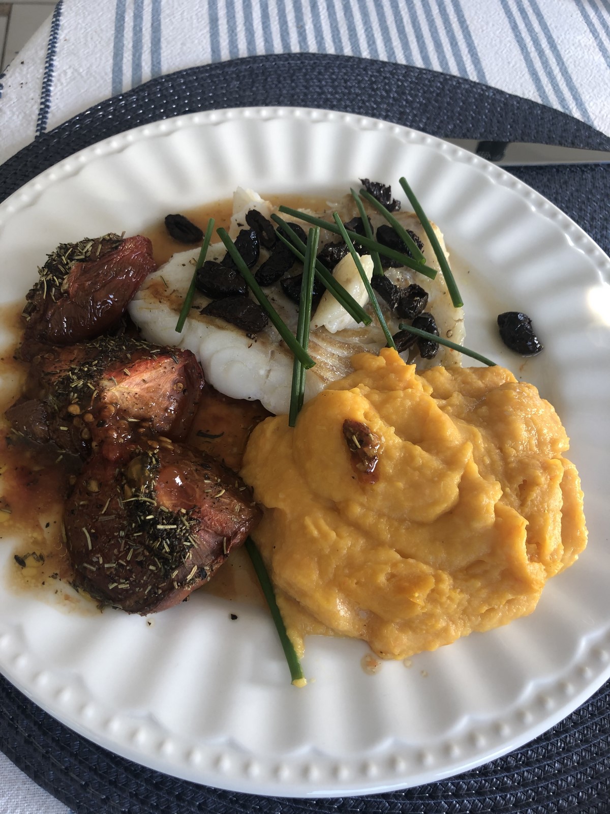 - Lieu jaune et son écrasé de pomme de terre à l'huile d'olive