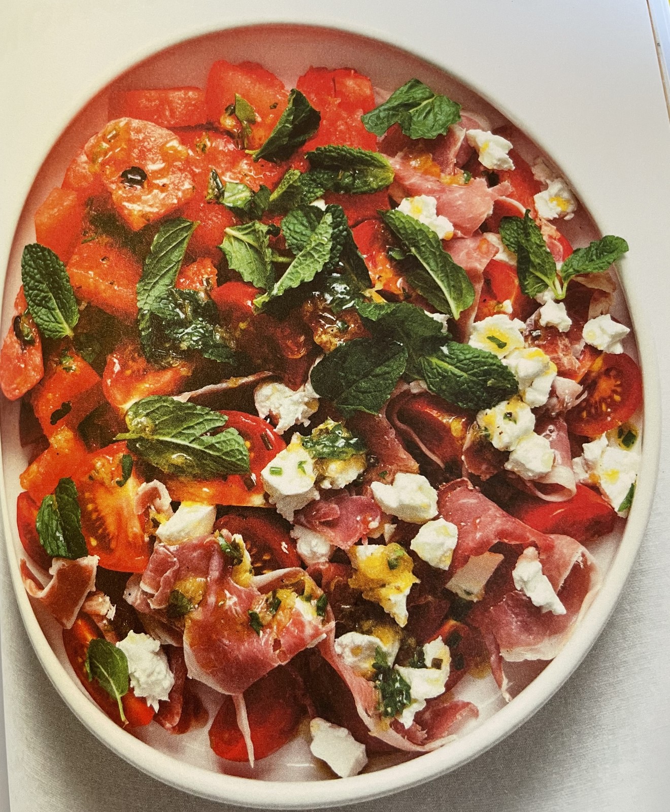 Salade pastèque, tomate et jambon