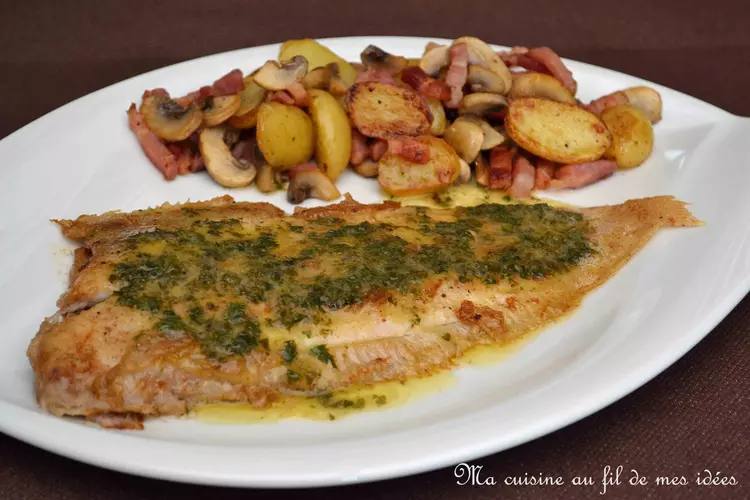 Sole meunière et pommes de terre aux lardons et champignons