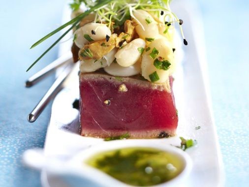 - Découpez le thon en rectangles. Servez tiède ou froid, accompagné du reste de marinade.
