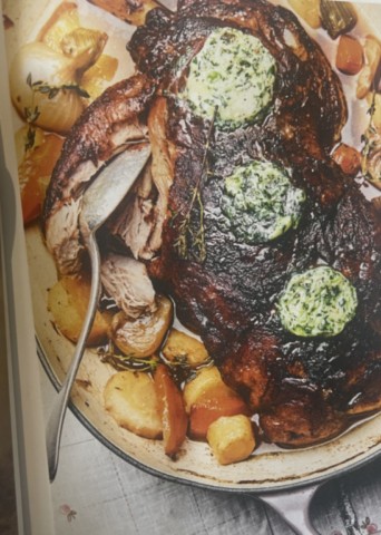 Gigot d'agneau à la cuillère Beurre à l'ail et légumes rôtis