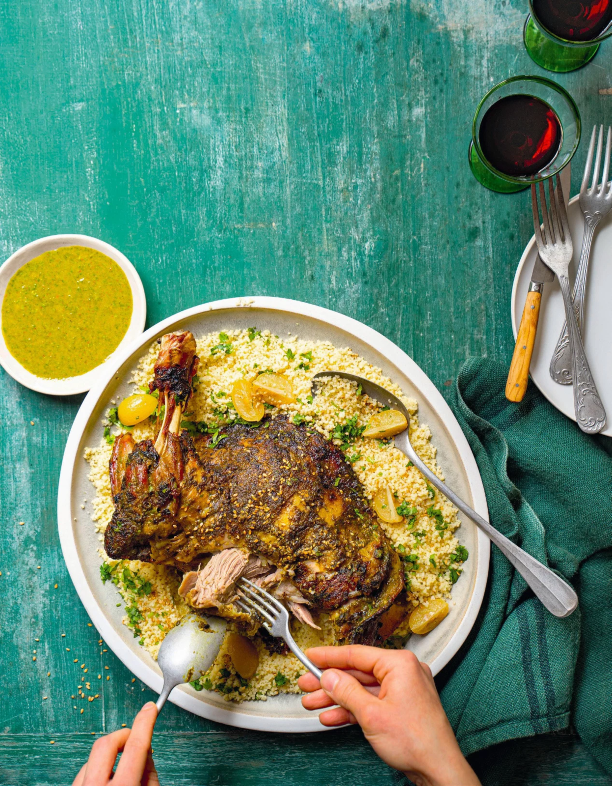 - Posez la viande dans un plat de service entouré des citrons confits et de couscous et parsemez de graines de sésame.
