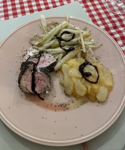 - Mignon de porc au pavot, pomme, poire et endive croquante