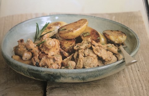 - Emincé de veau au romarin Rattes et girolles sautées