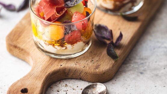 - Verrine de fromage melon et jambon sec