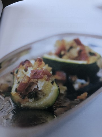 - Répartir ce mélange dans les tronçons de courgette et servir aussitôt