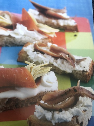 - Tartines, artichaut, jambon, anchois