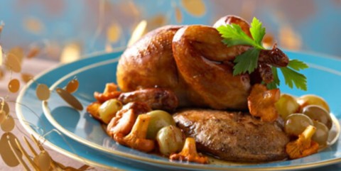 - Servez chaque caille avec 1 tranche de foie gras et des grains de raisin. Arrosez de jus de cuisson.