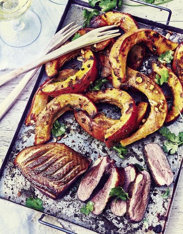 - Magret de canard et potimarron rôti miso-cacahuètes