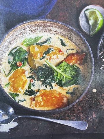 - Servez le curry de haddock avec le riz sauvage quelques feuilles de basilic thaï les feuilles d'épinards réservées et des quartiers de citrons vert.