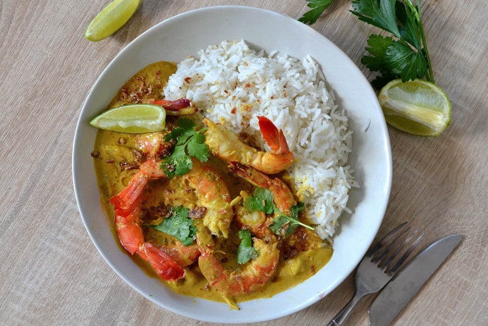 Crevettes au curry au lait de coco