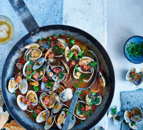 - Couvrez, puis laissez cuire 3 à 5 min jusqu’à ouverture de toutes les coquilles, en jetant celles qui restent fermées.
