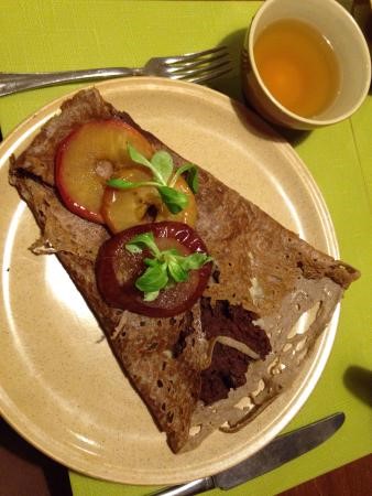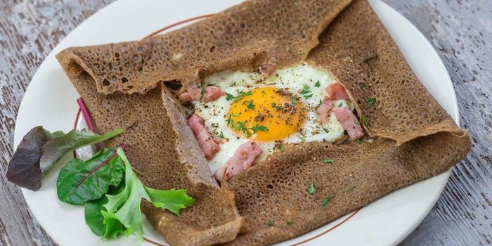 Crèpe de sarasin à la fondue d'épinards, oeufs et gruyère