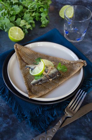 - Egouter les filets de sardines. Presser le demi-citron. Cuire les galettes. Les plier en quatre de manière à former un triangle. Beurrer le dessuset disposer les sardines sur les galettes.