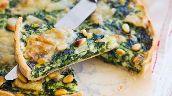 - Tarte épinards, chèvre et pignons de pin