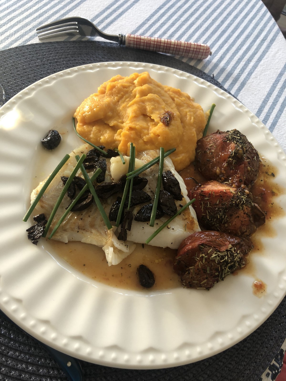 - Lieu jaune et son écrasé de pomme de terre à l'huile d'olive