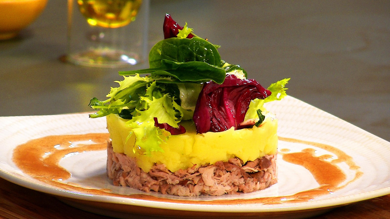 - Confectionner une boule de mesclun à la main et la placer sur le parmentier.