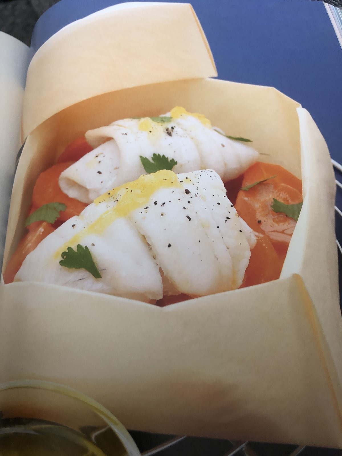 - Coupez 4 grandes feuilles de papier sulfurisé. Répartissez les fines rondelles de carottes et disposez les filets de sole par dessus. Arrosez les carottes et le poisson de la moitié de la sauce au citron et gardez le reste pour le service. Roulez deux fois le papier autour de la garniture puis repliez les bords en dessous pour formez une papilotte bien hermétique. Faites les cuire 10 mn au four. Pedant ce temps effeuillez le coriandre