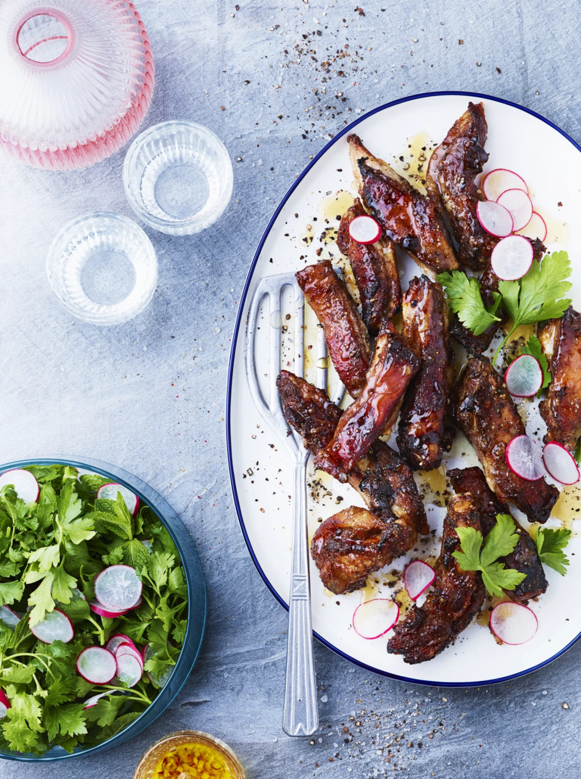 - Servez les ribs d’agneau avec une salade d’herbes préparée en éminçant persil, menthe, coriandre et radis, et assaisonnez d’une vinaigrette.