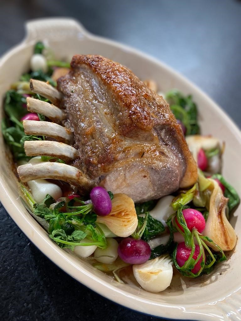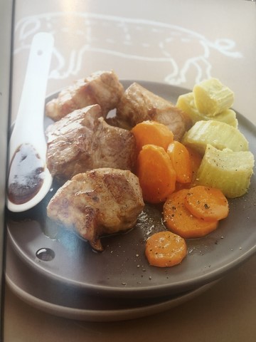 - Echine de porc à la rhubarbe et carottes glacées