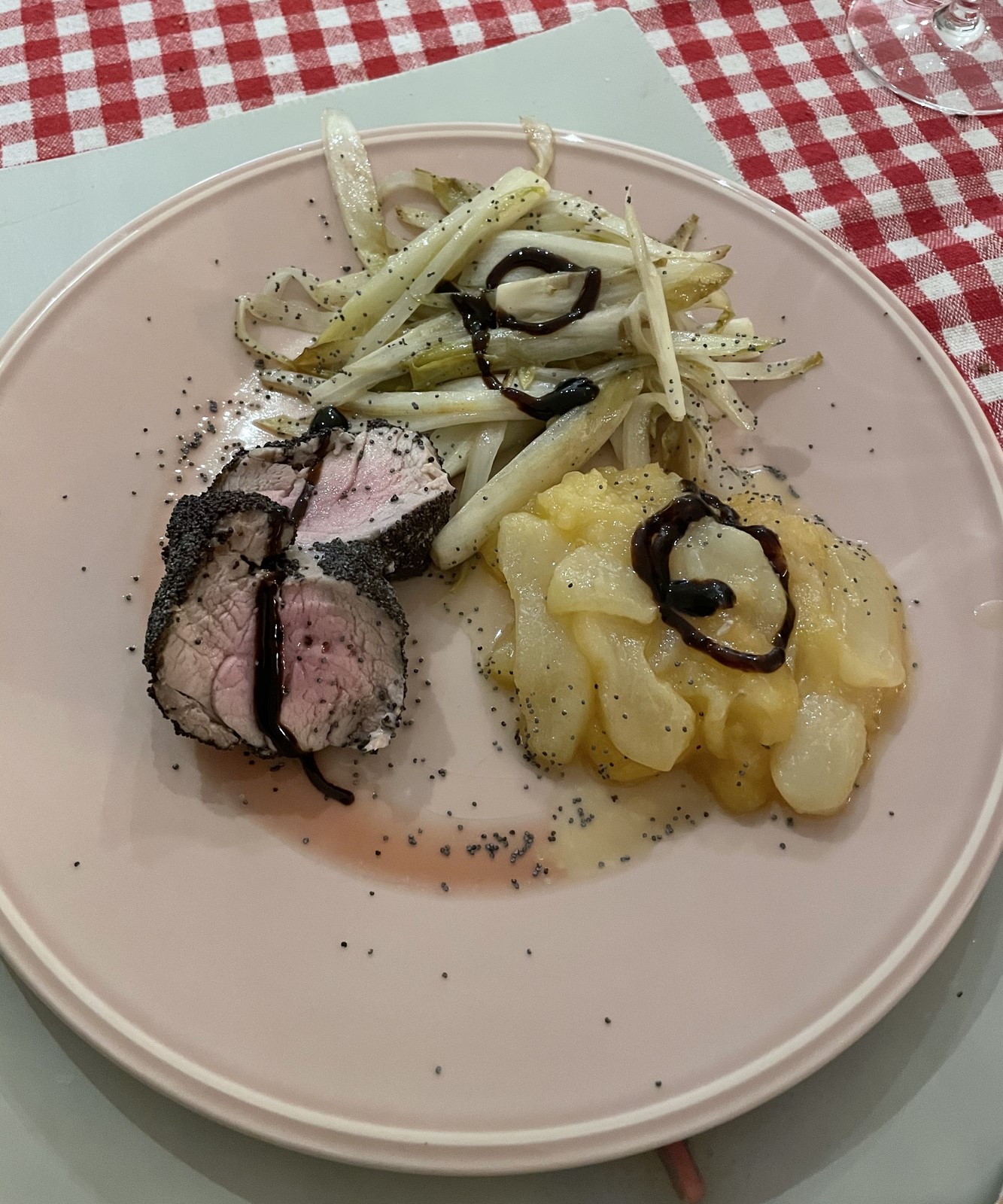 - Mignon de porc au pavot, pomme, poire et endive croquante
